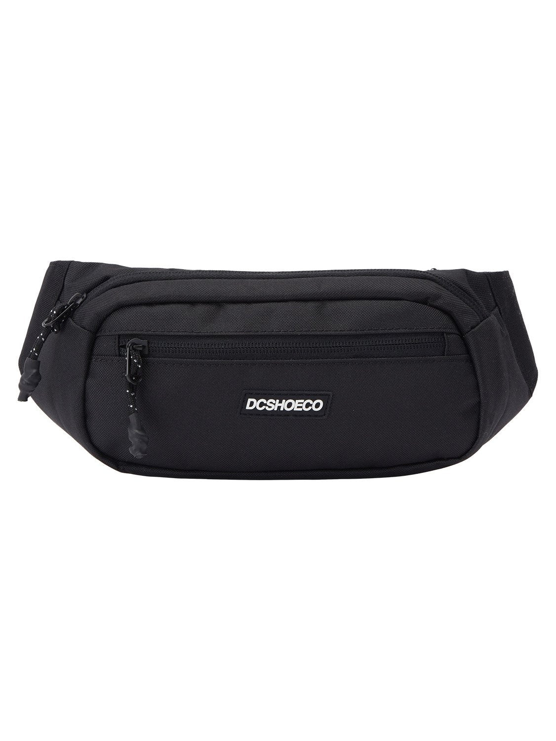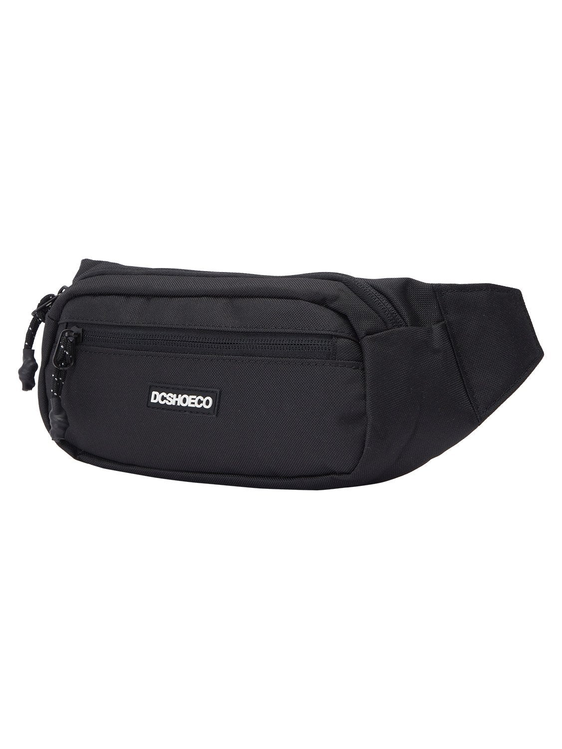 "Type: Waistpack. Fabric: 100% recycled polyester 600D & 100% recycled polyester lining. Main compartment with zipper closure. Interior key hook and flat mesh pocket with elastic binding. Front slip pocket with zipper closure. Back slip pocket with zipper closure. DCSHOECO branded PVC patch on front. Adjustable waist strap with plastic buckle closure. RE/SOLVE hangtag. Dimensions: 4.7""H x 15.3""W / 12cmH x 39cmW. Volume: 1.62L"