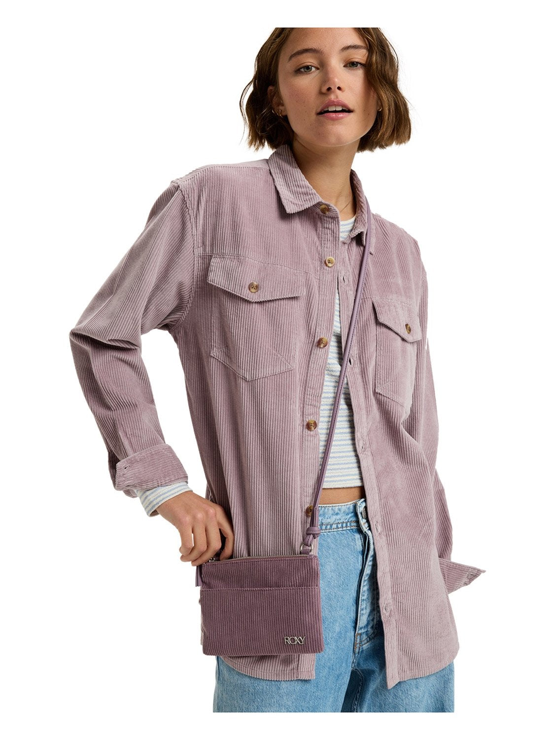 "Type: Small crossbody. Fabric: Corduroy. COMPARTMENTS: 1 main zippered compartment; interior slip pockets for cards. FEATURES: Metal Hardware; Roxy metal plate. DIMENSIONS: 7.04"" (H) x 4.73"" (W) x 1.18"" (D) / 18 x 12 x 3 cm. Volume: 0.6 L"