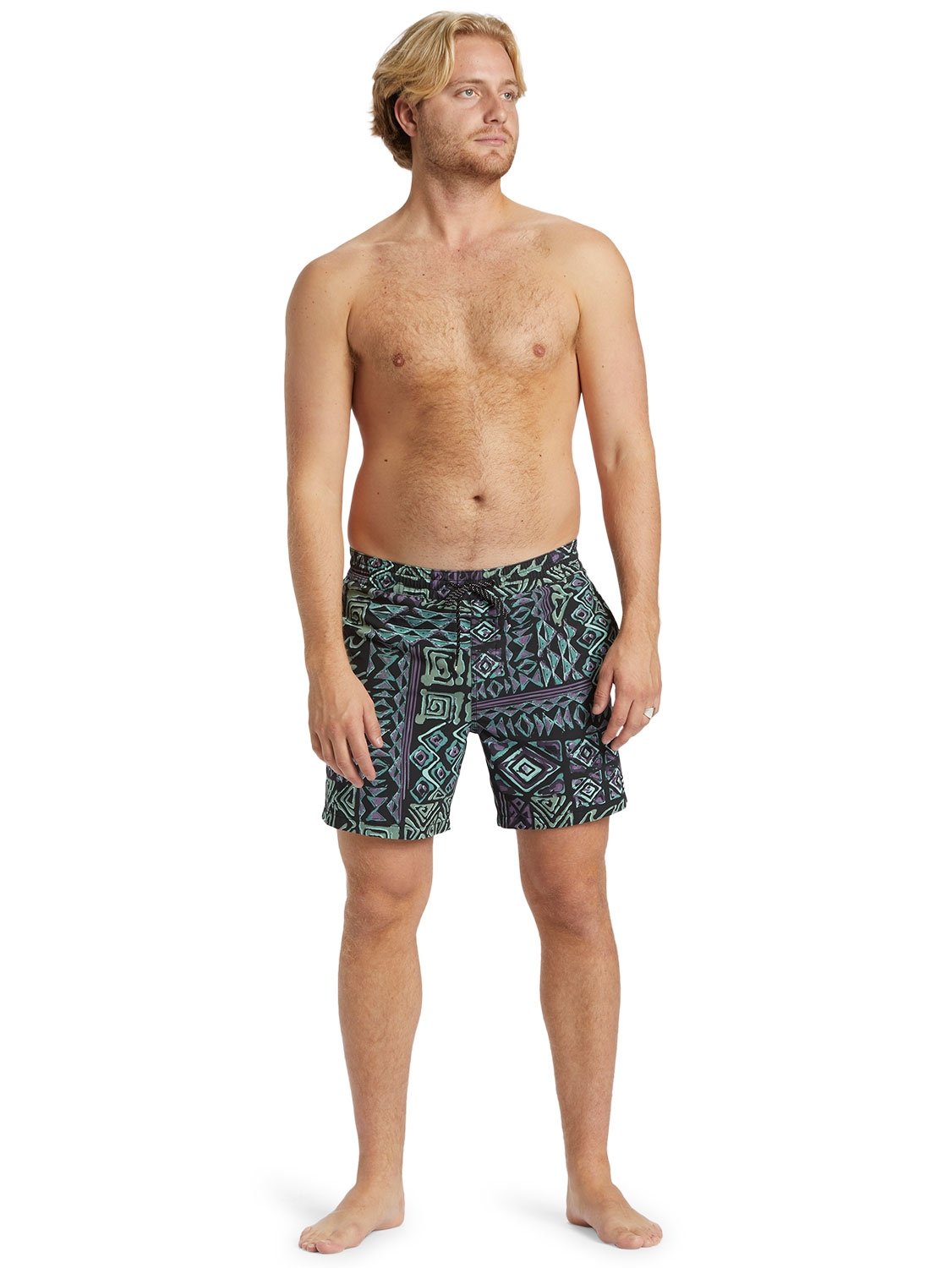 Type: Volley. Fabric: 4 Way Stretch. Outseam: 17? outseam. Pockets: Side-entry pockets. Back pocket
