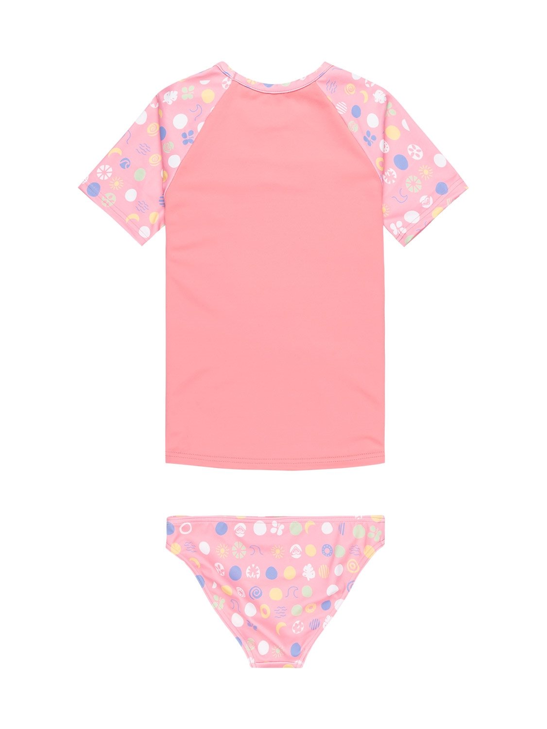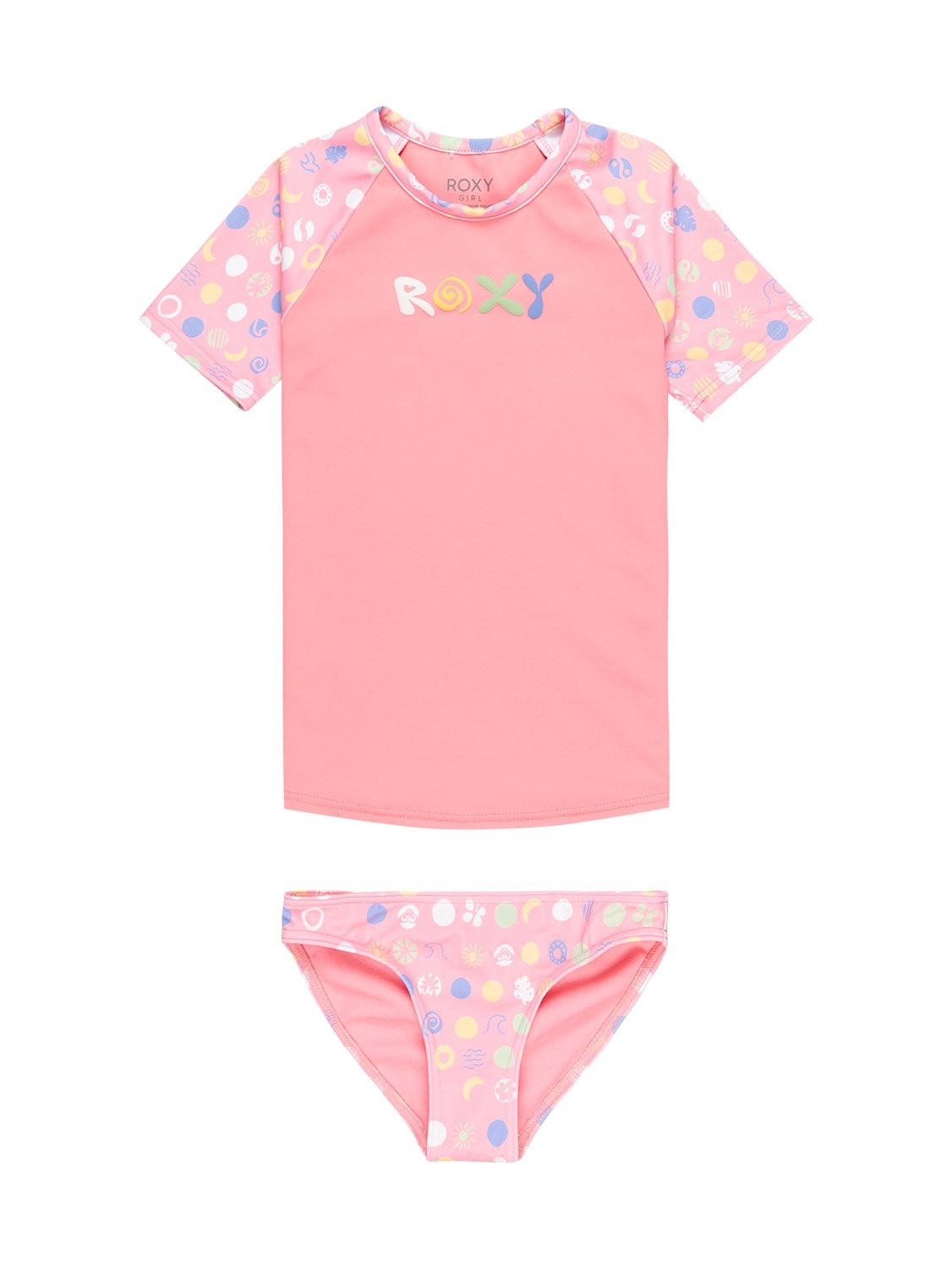 Type: 3/4 sleeve lycra. Fabric: Soft; recycled; resistant & stretch. Fit: Fitted. ROXY puffy logo at front. Printed sleeves and bottom.