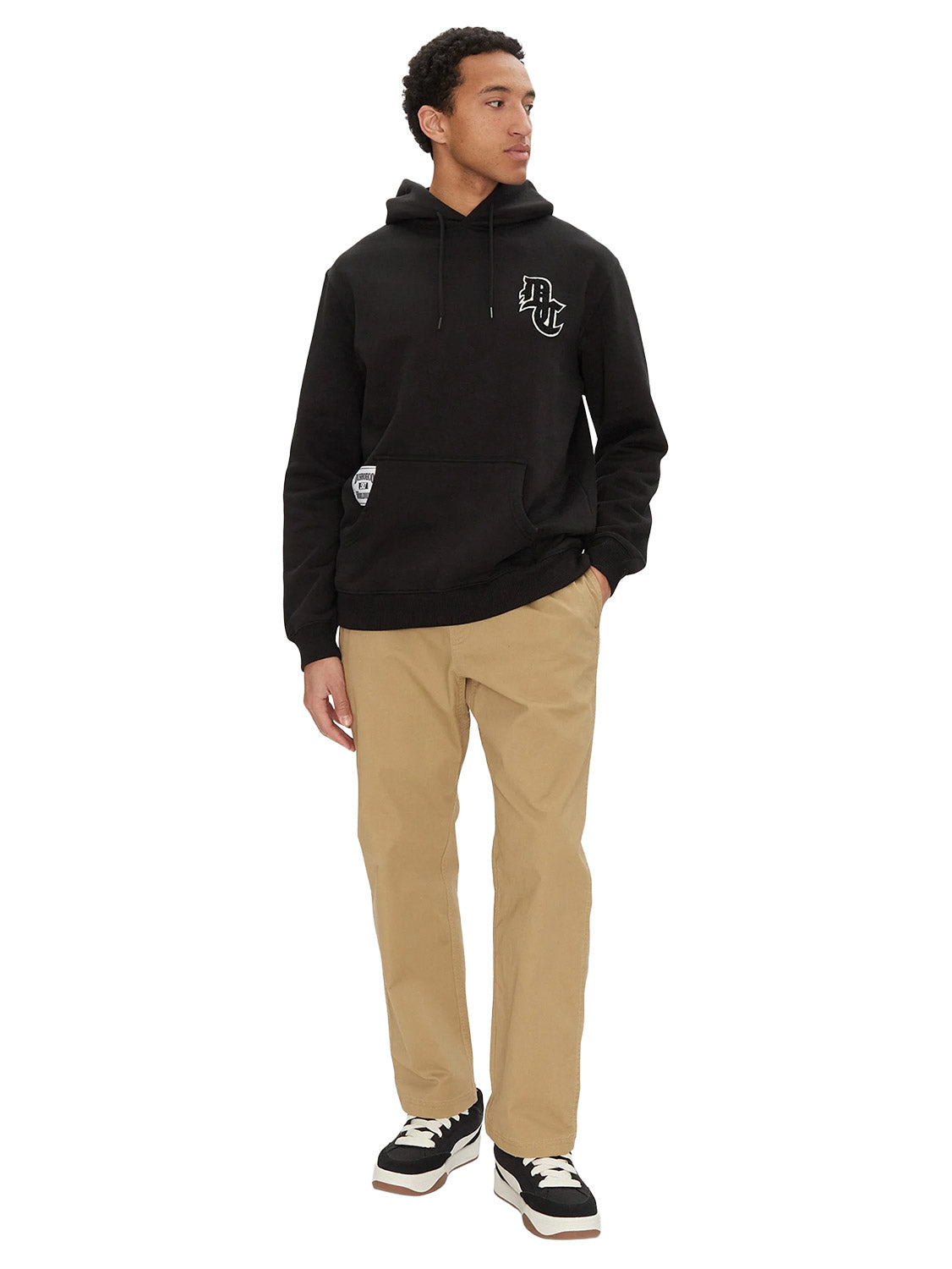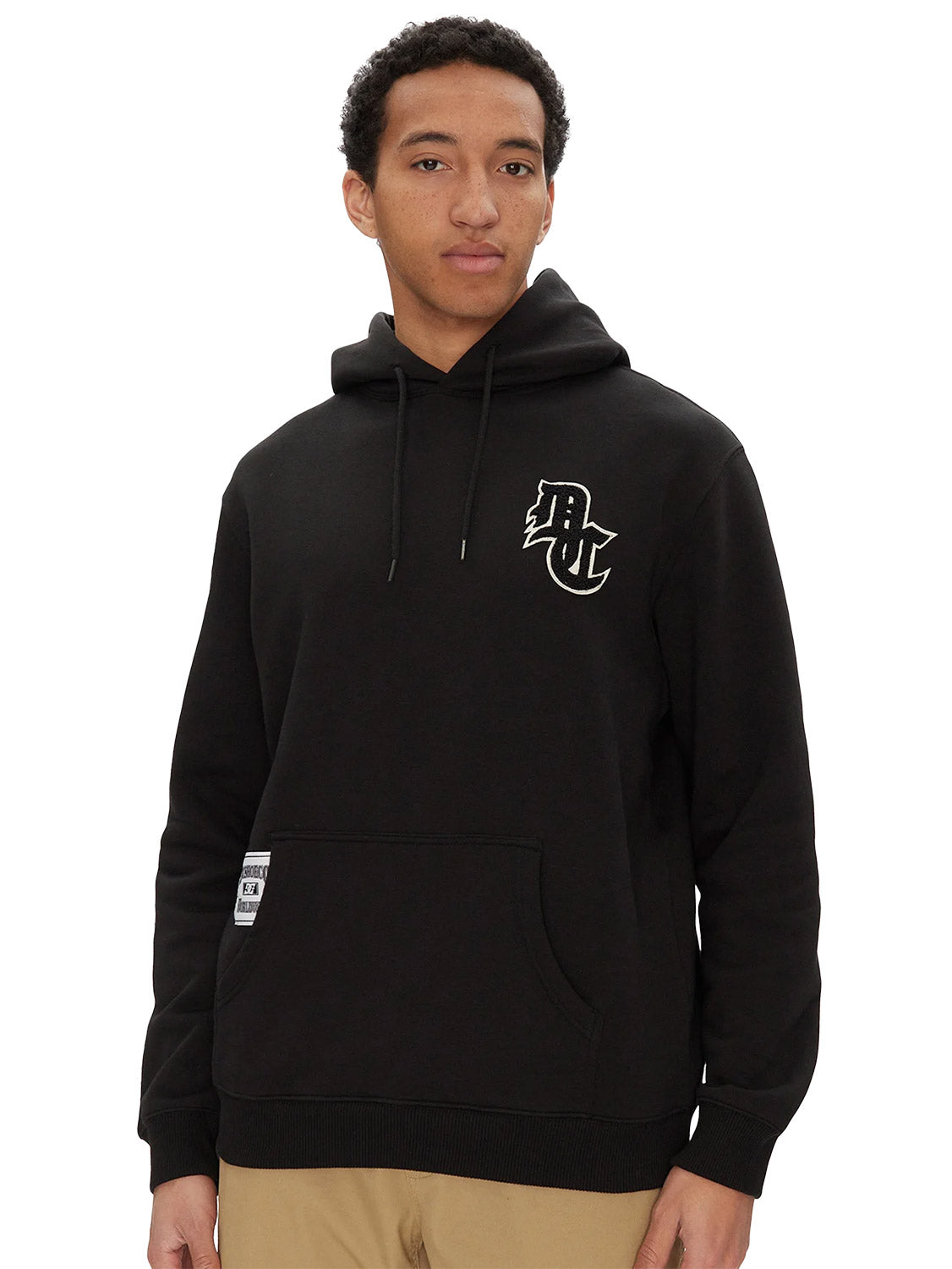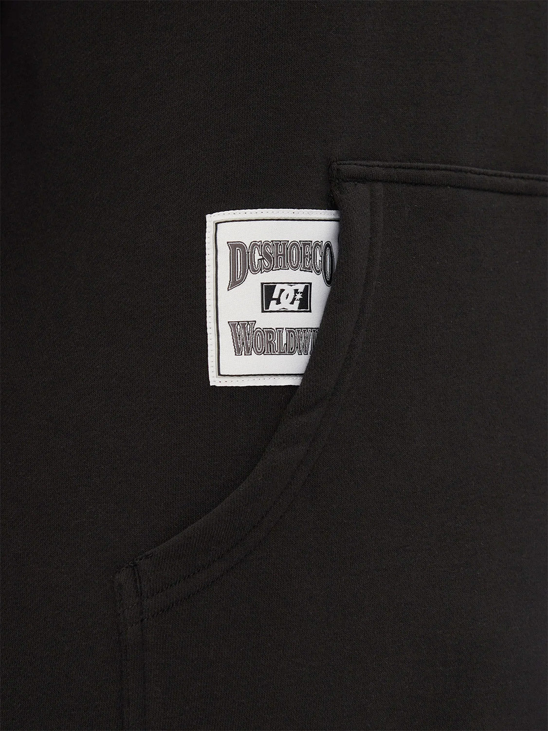 - DC jock tag under right opening of kangaroo pocket.