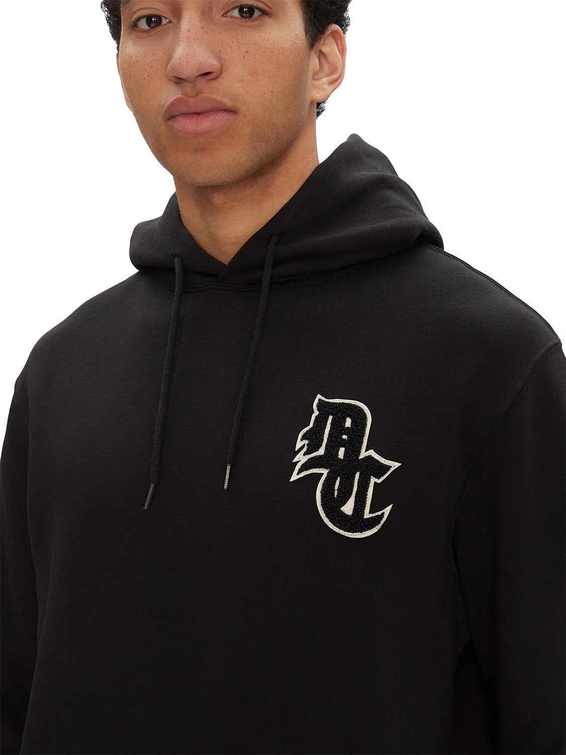 - DC Old English chenille patch at left chest.