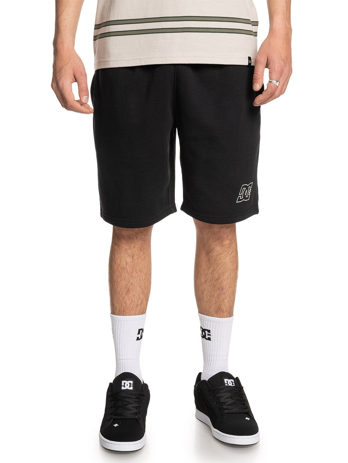 Type: Sweatshort. Fabric: Light weight cotton/ polyester french terry (260g/m2). Fit: Standard fit. Fly/Waist: Ribbed waist with encased elastic. Buttonholes and round drawcord with knotted ends. SS welt pockets. Patch pocket on back right leg. Print on left leg. DC trim package