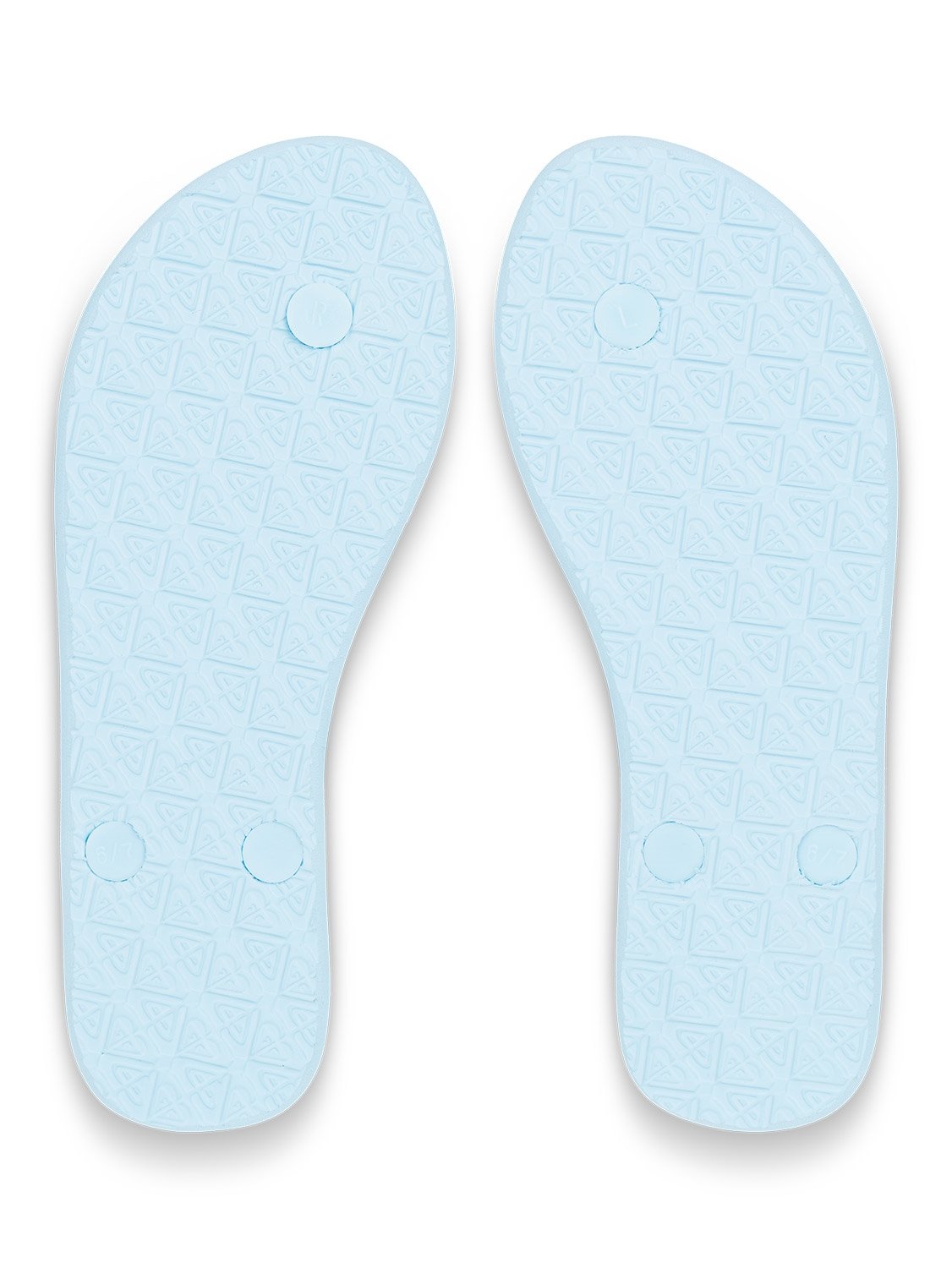 Made with PVC-Free materials. Upper: TR upper straps with metal Roxy pin. Footbed: Recycled rubber sponge EVA. Outsole: Recycled rubber sponge EVA with Roxy heritage art. Packaging: Polybag and hanger