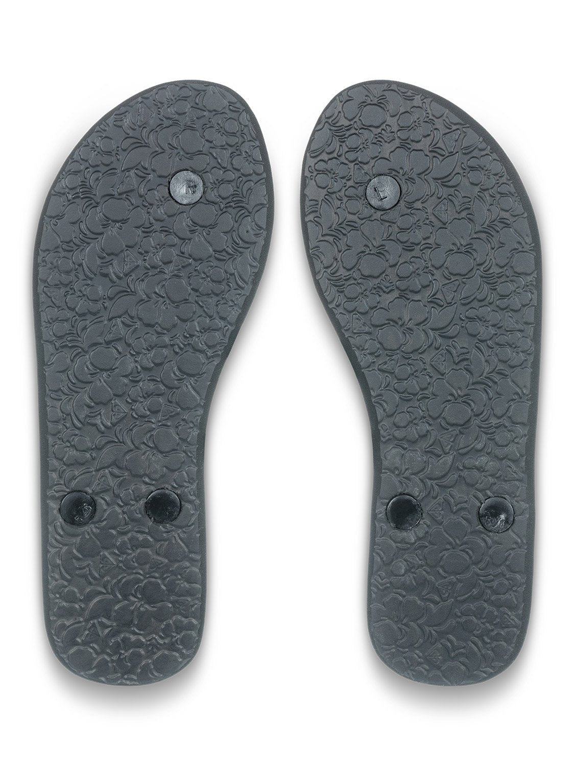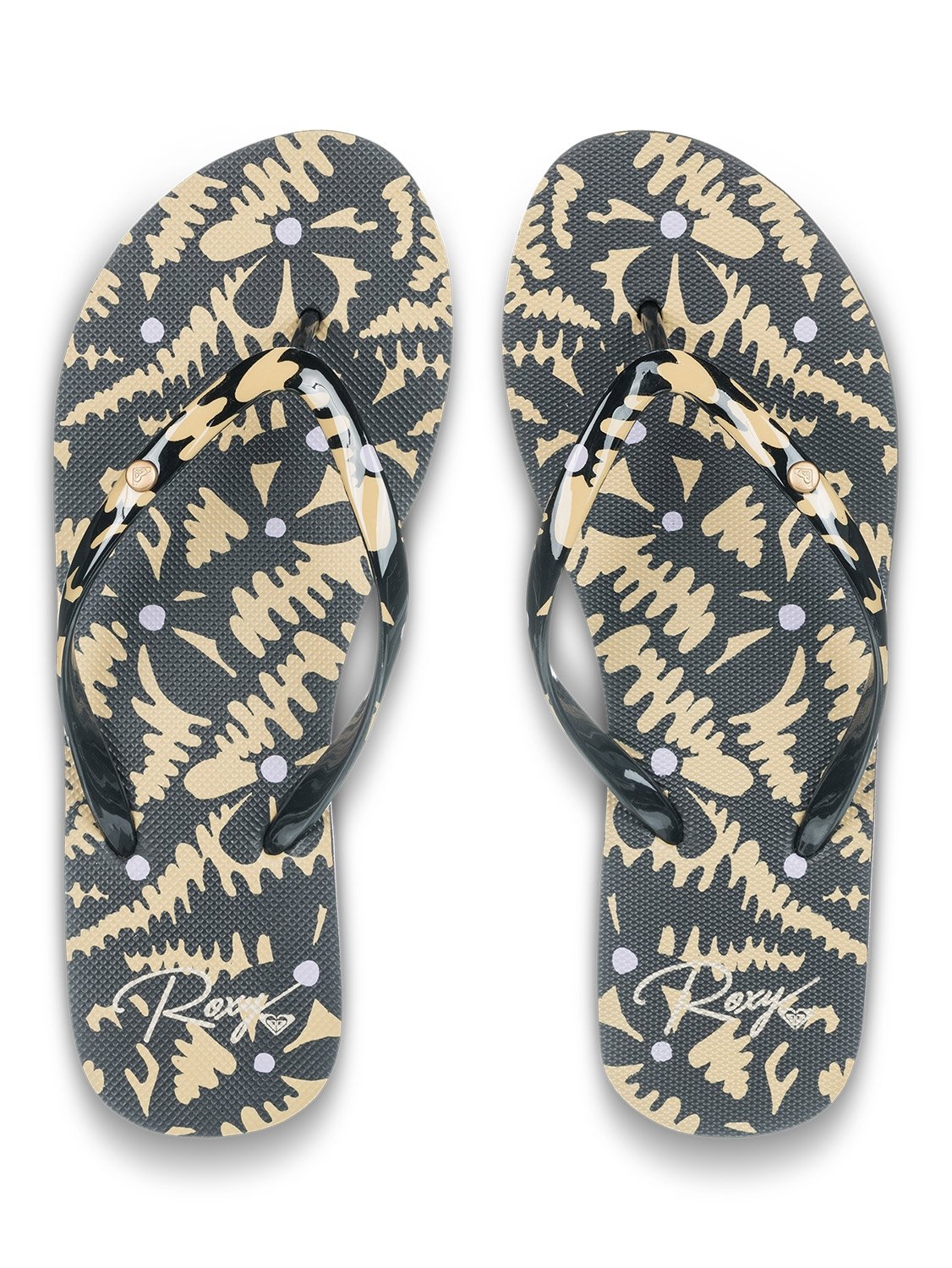 Made with PVC-Free materials. Upper: Printed; TR upper straps with metal logo pin. Footbed: Recycled rubber sponge EVA footbed; printed with an environmentally friendly ink graphic. Outsole: Recycled rubber sponge EVA with Roxy heritage art. Packaging: Polybag and hanger