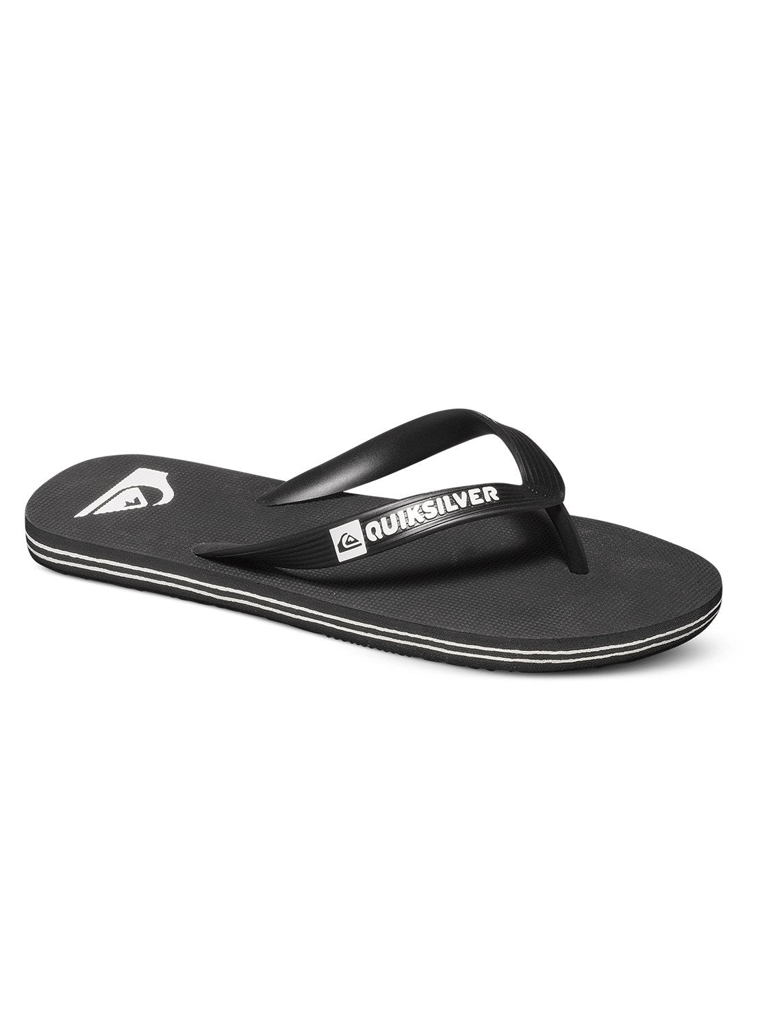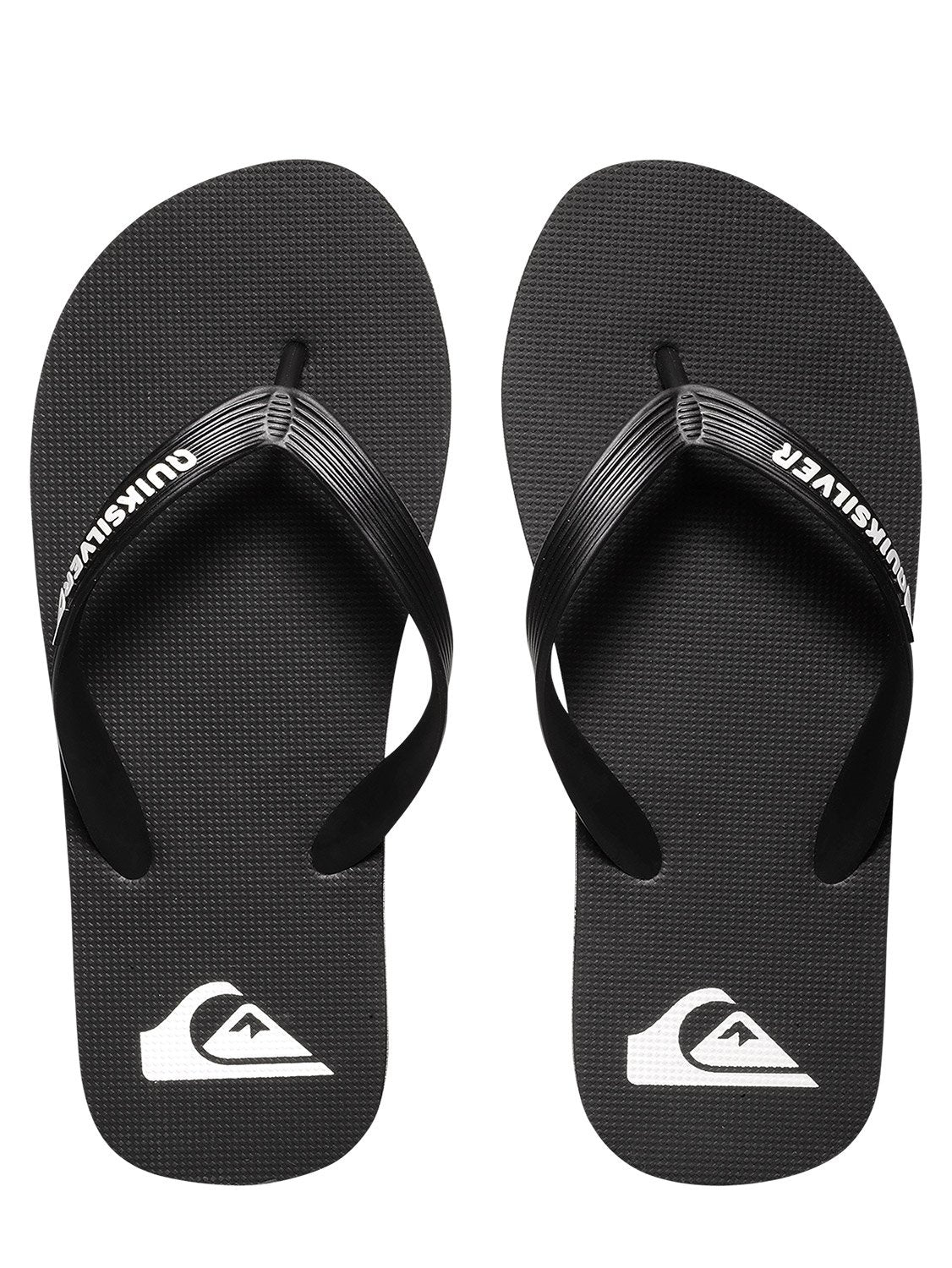 "Flexible 3-point synthetic rubber strap Quiksilver branding and fine mould Mountain & Wave logo Slip-resistant textured insole Pop colour pin lines in sidewall Blown rubber outsole with multi-angled logo lugs for traction"