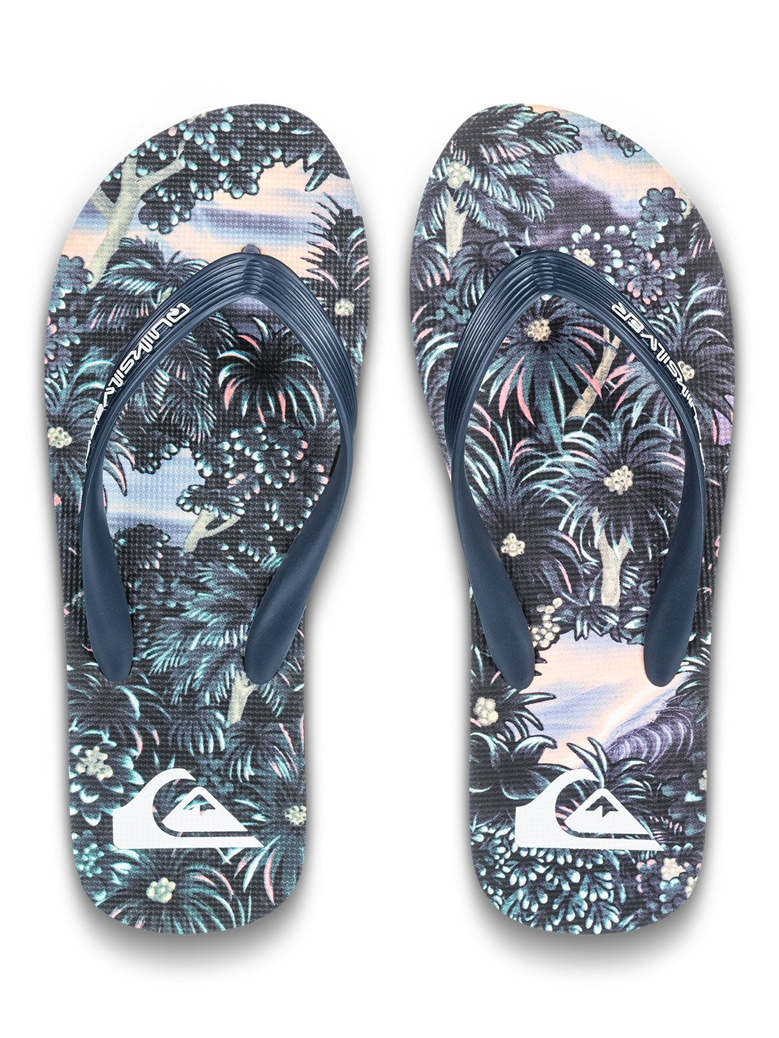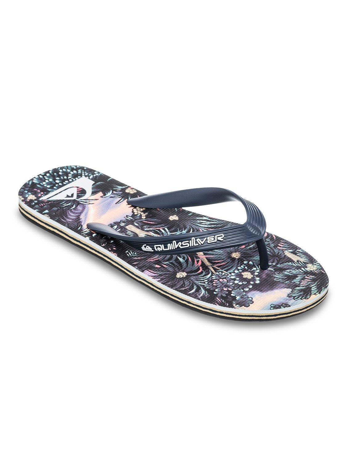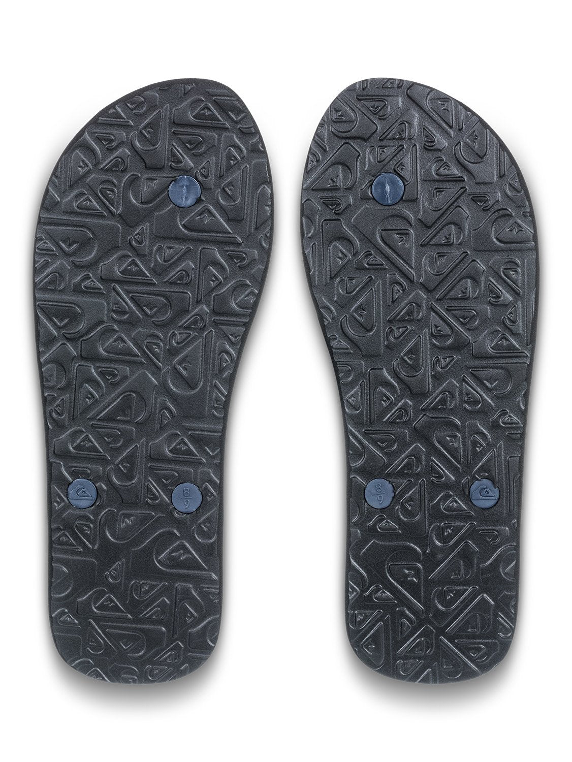 Flexible 3 point synthetic rubber strap with Quiksilver logo and fine mold Mountain Wave logo^Slip resistant textured footbed^Pop color pin lines in sidewall tying into colorway^Engineered blown rubber outsole incorporates multi angled logo lugs for added traction.