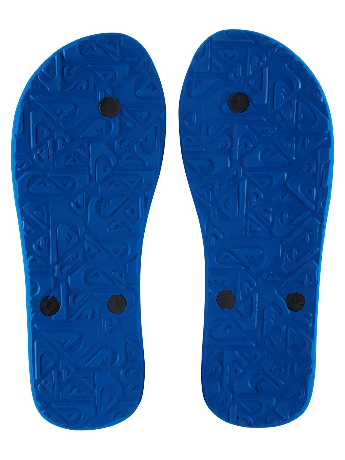 Flexible 3 point synthetic rubber strap with Quiksilver wordmark and fine mold Mountain Wave logo. Slip resistant textured footbed. Pop color pin lines in sidewall tying into colorway. Re-engineered blown rubber outsole incorporates multi angled logo lugs for added traction