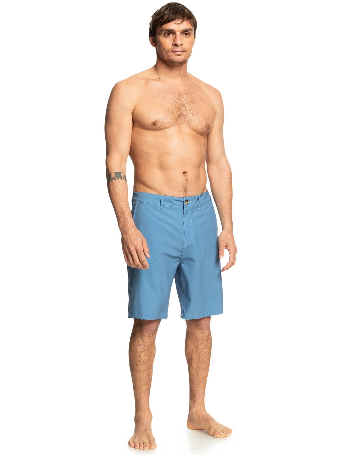 Type: Amphibian. Fabric: REPREVE[TM] traceable recycled 4-way stretch. DryFlight Water Repellent Hydrophobic Treatment. Outseam: 20? . Regular fit. Waist: Non-corrosive zip fly. Button closure. Pockets: Side-entry pockets. Back zip pocket(s)