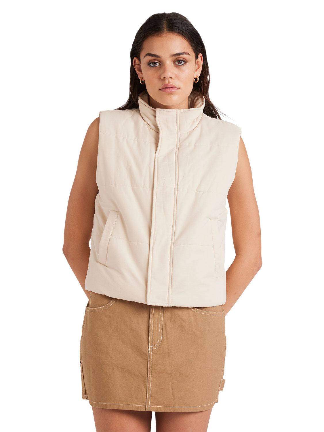 Product Type: Puffer Jacket. Fabric: 60% Cotton; 40% Recycled Nylon. Weight:142g. Fit/Length:Oversized. Pockets:Welt pockets. Closure:Zip & Storm flap. Puffer jacket with welt hip pockets