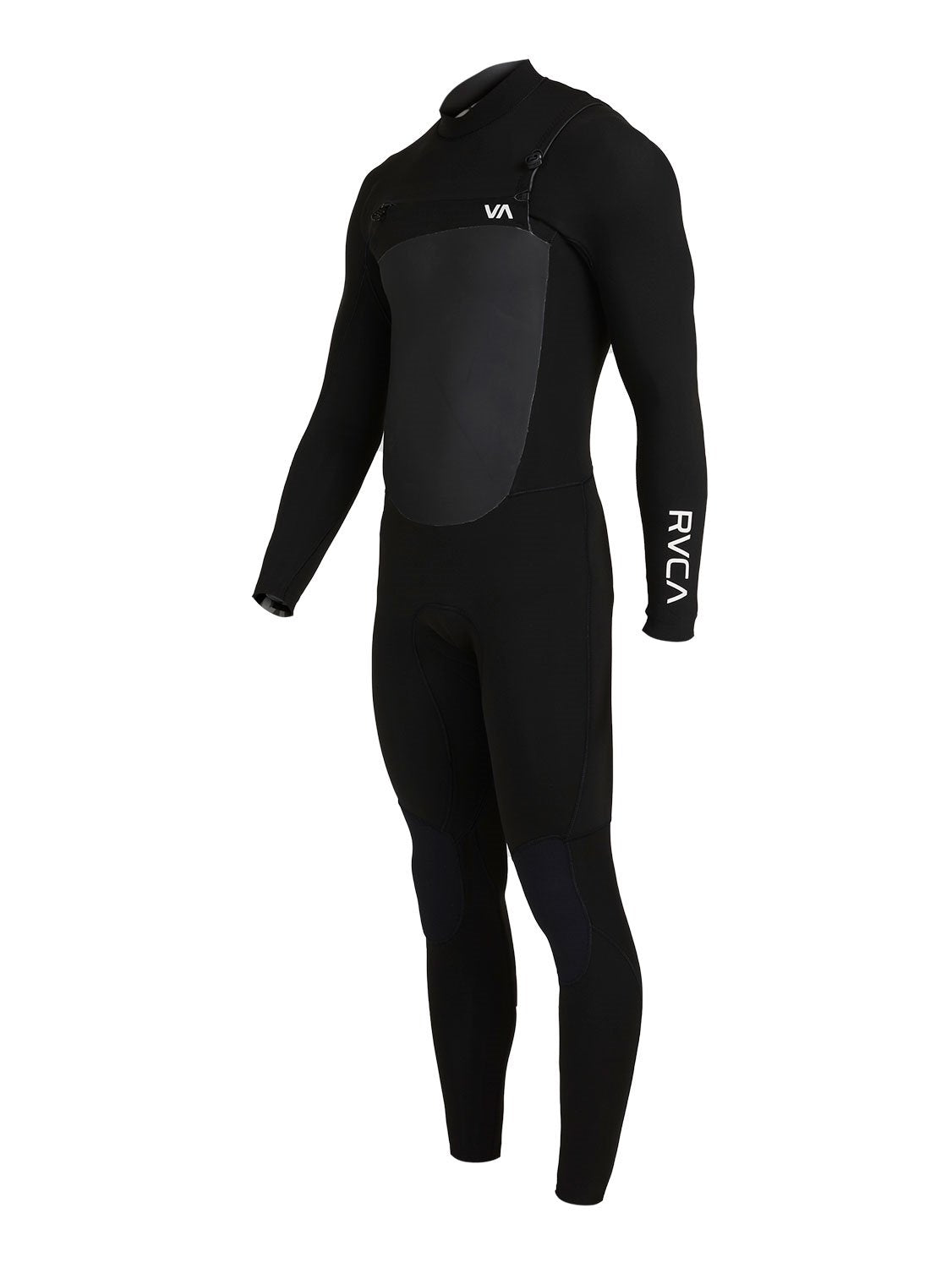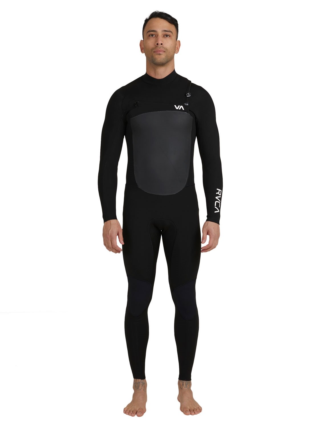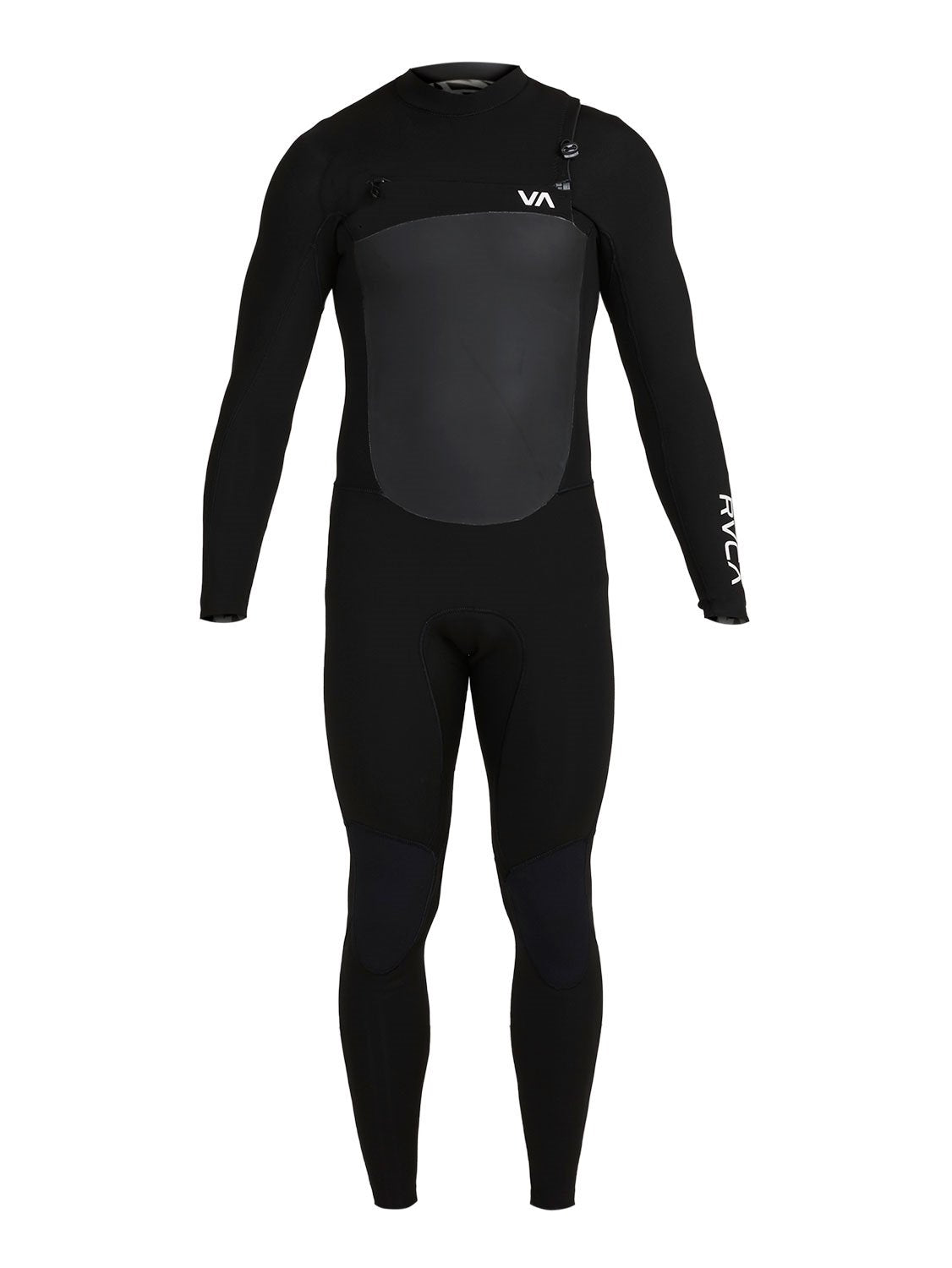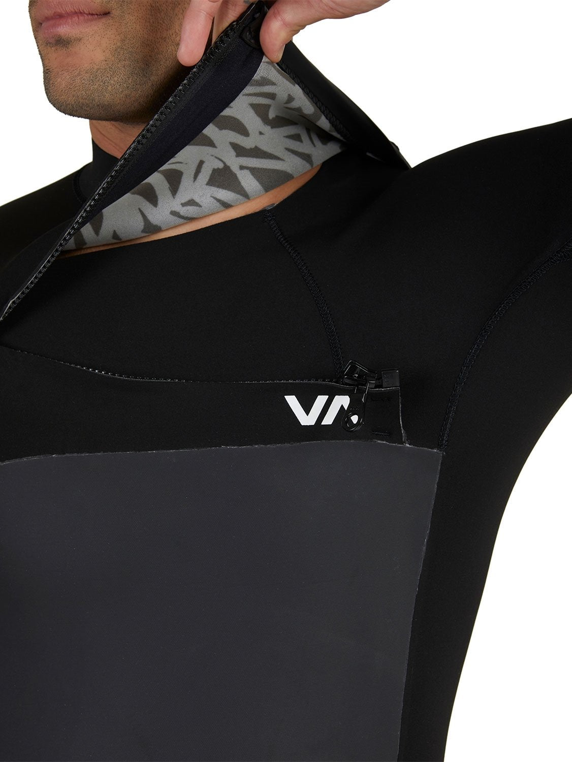 Men's 3/2mm Chest Zip Fullsuit. Interior RVCA print. Interior thermal for heat conduction. Smoothie panels for wind chill protection. Glued & Blind-Stitched seams for warmth. Fully taped internal seams for added comfort. Solvent free glue. Closure: Chest zip. Sleeves: Long sleeves. RVCA VA logo branding at chest and leg.?
