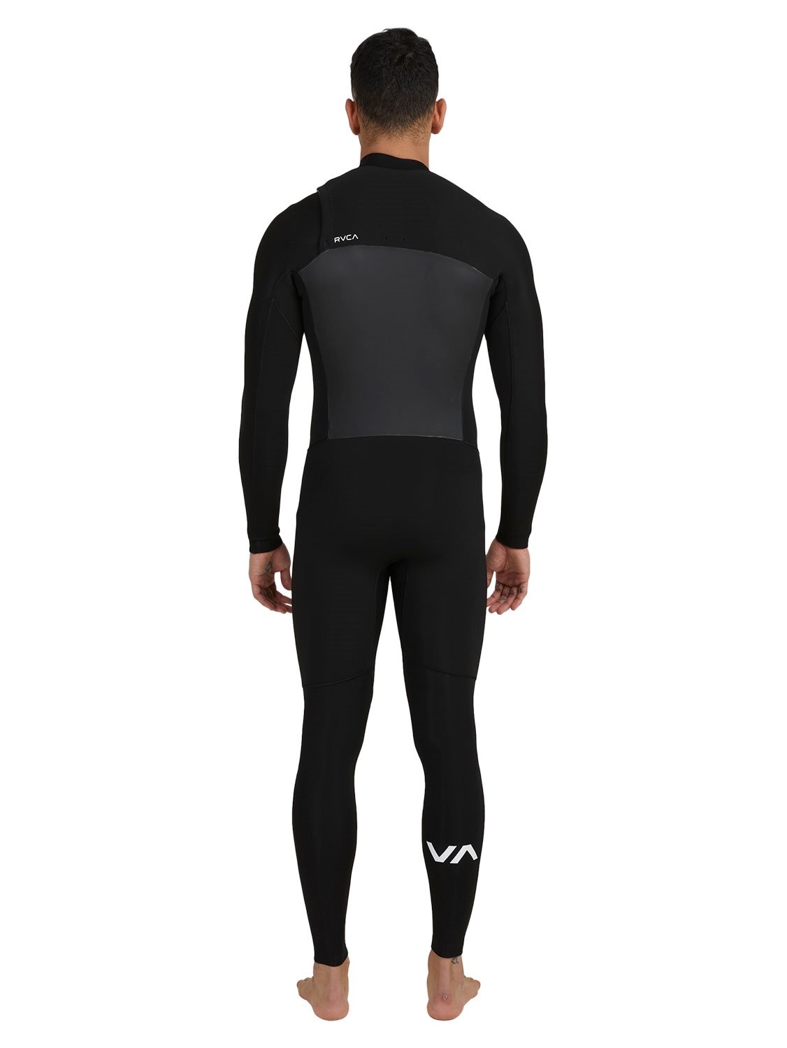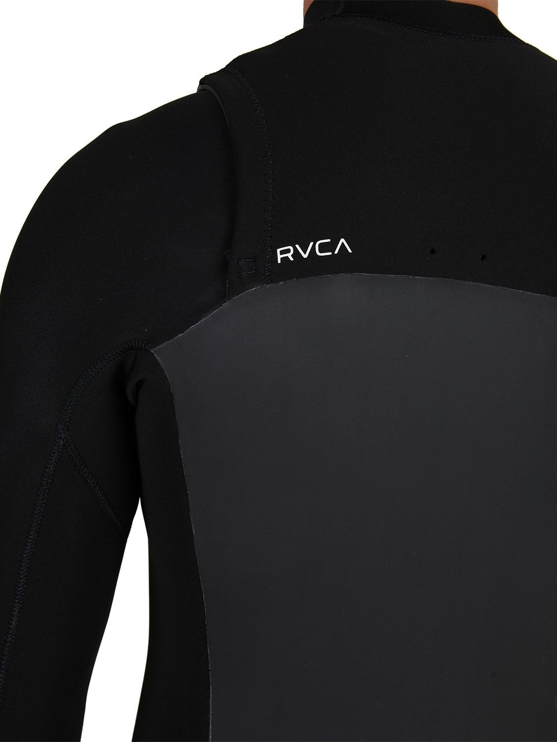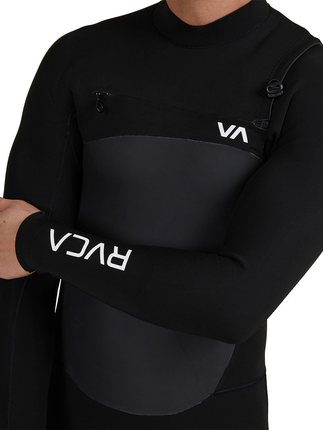 Men's 3/2mm Chest Zip Fullsuit. Interior RVCA print. Interior thermal for heat conduction. Smoothie panels for wind chill protection. Glued & Blind-Stitched seams for warmth. Fully taped internal seams for added comfort. Solvent free glue. Closure: Chest zip. Sleeves: Long sleeves. RVCA VA logo branding at chest and leg.?