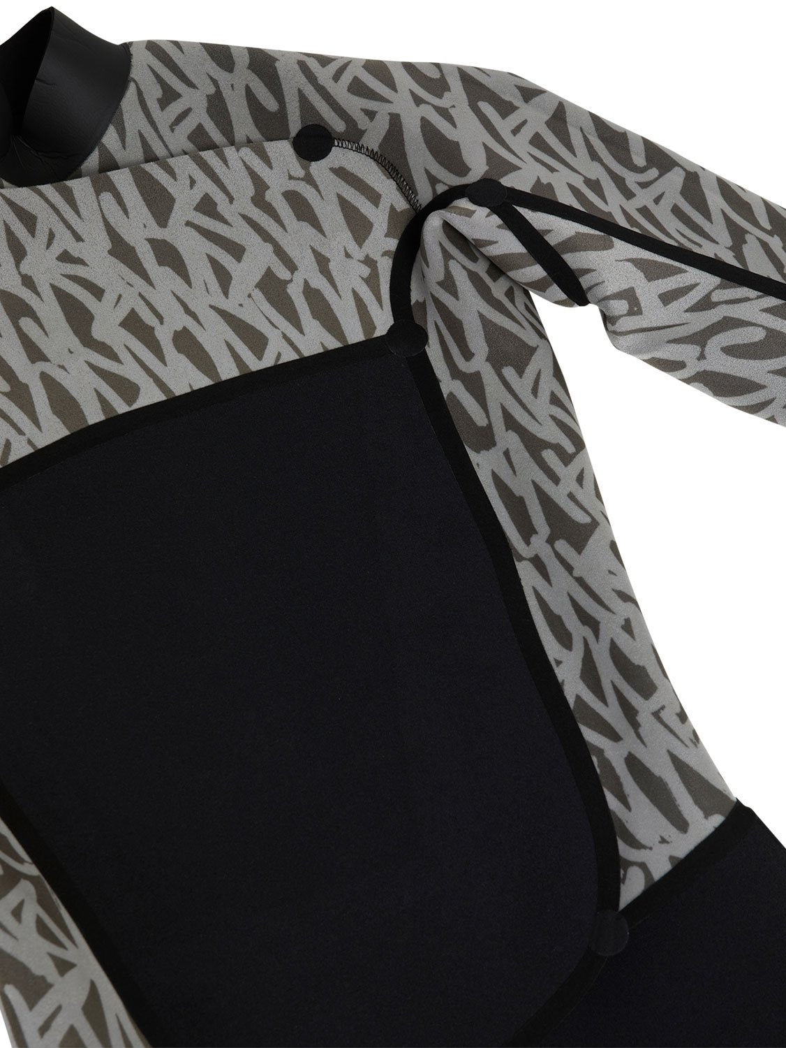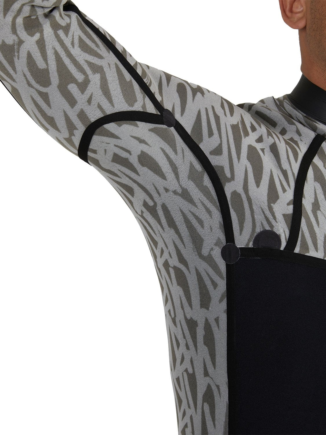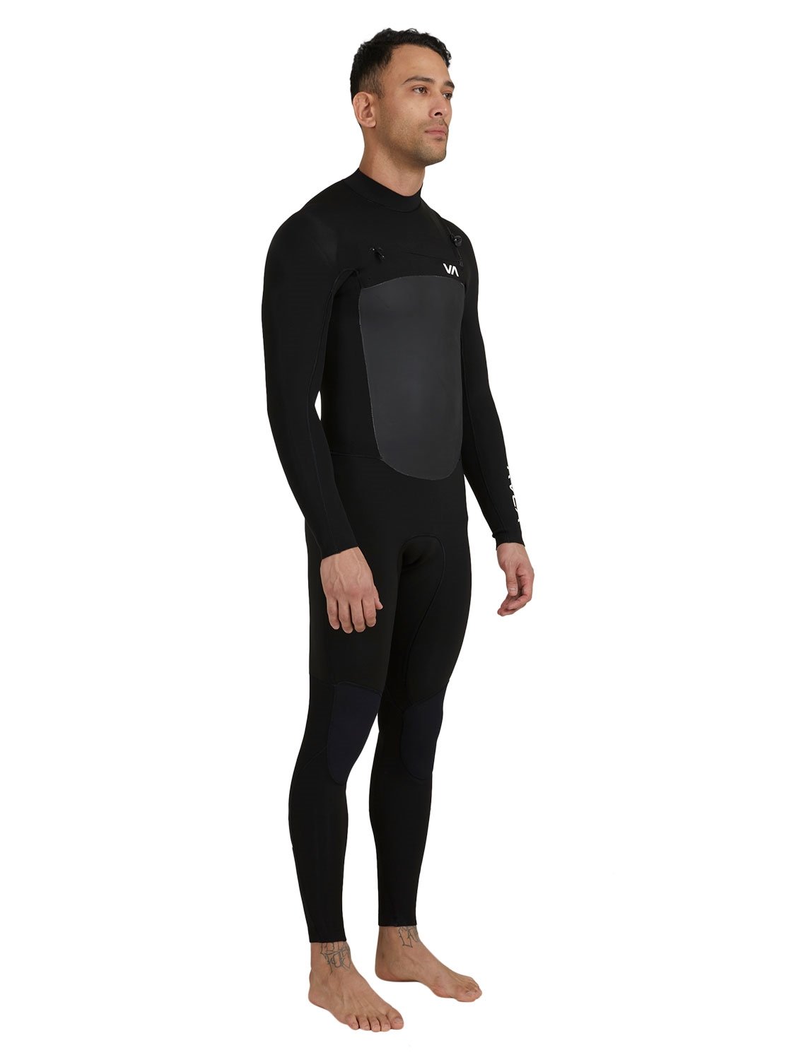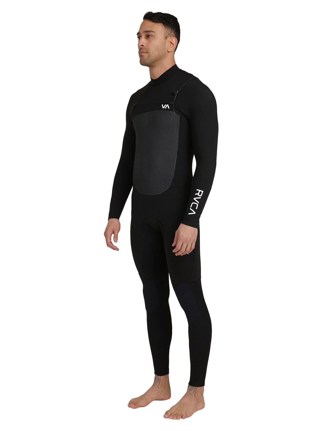 Men's 3/2mm Chest Zip Fullsuit. Interior RVCA print. Interior thermal for heat conduction. Smoothie panels for wind chill protection. Glued & Blind-Stitched seams for warmth. Fully taped internal seams for added comfort. Solvent free glue. Closure: Chest zip. Sleeves: Long sleeves. RVCA VA logo branding at chest and leg.?