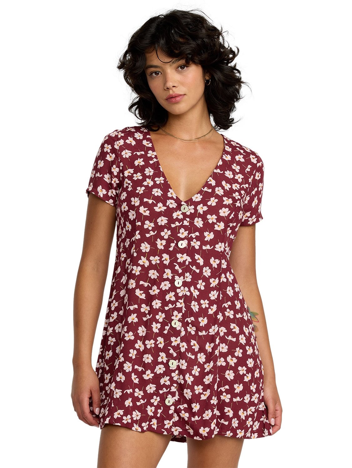 100% VISCOSE WOVEN-LOW V CURVED NECKLINE-BUTTONS AT FRONT CLOSURE-RVCA METAL BADGE-FITTED