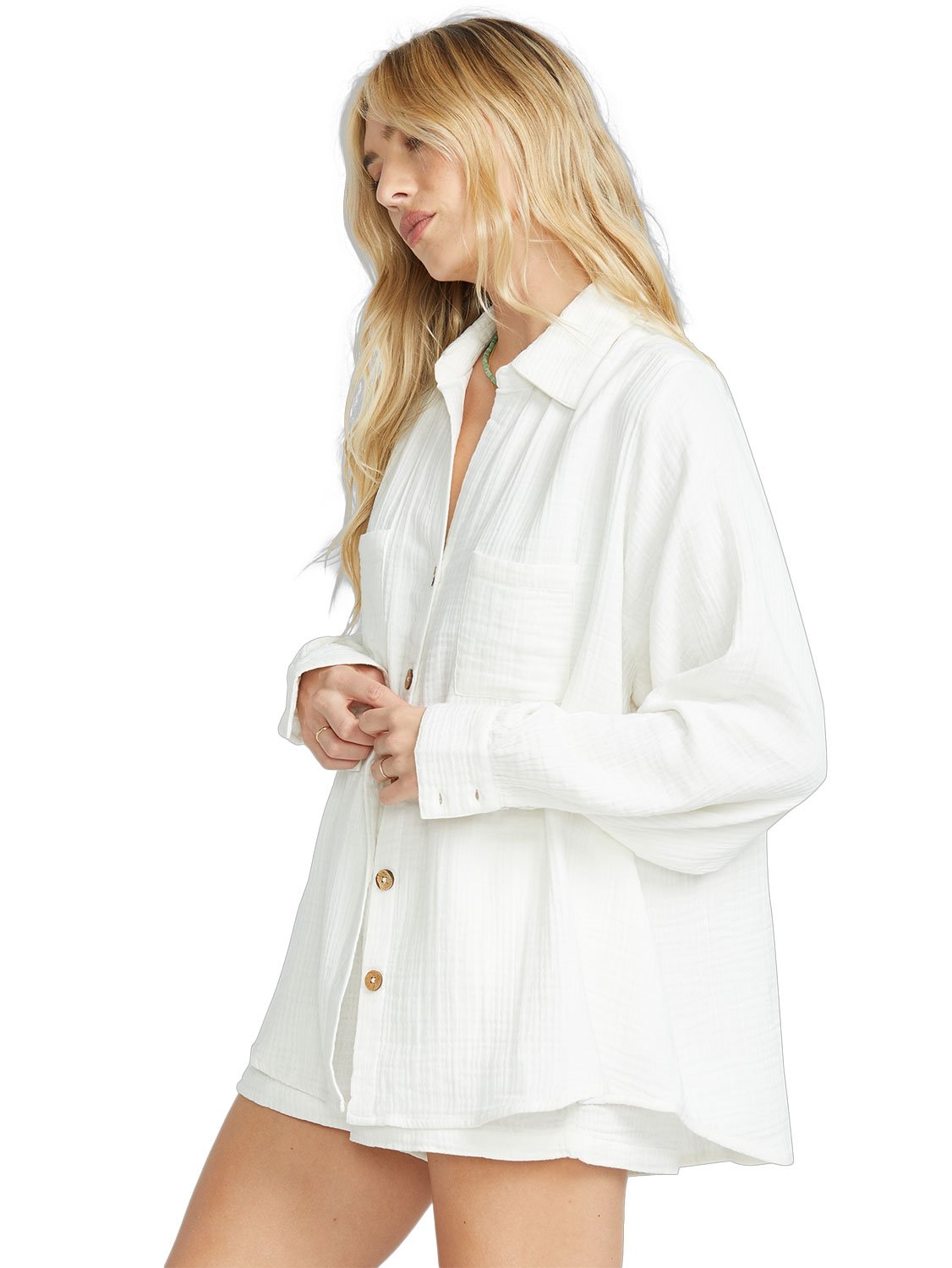 Product Type: Button down shirt. Fabric: Cotton double gauze. Fit: Oversized fit. Closure/Neck: Collar and stand. Branding: Metal Plate. Patch pockets at front